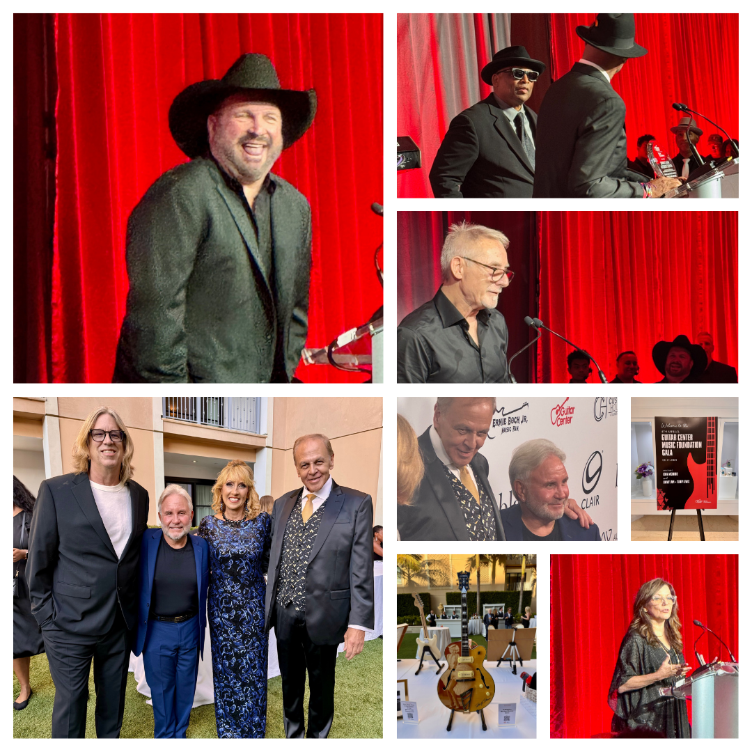 What a treat! Last Thursday night, I was a guest of the Guitar Center Foundation for their 4th Annual Gala at the beautiful Maybourne Hotel in Beverly Hills. We were there to celebrate two music industry icons: John McBride, sound engineer extraordinaire and owner of Blackbird Studios in Nashville, received a lifetime achievement award, and legendary producers Jimmy Jam & Terry Lewis received the Vanguard award for their unmatched contributions to music and education. The evening started with a cocktail reception and silent auction, followed by a lovely dinner, an energetic auction, and award presentations. Martina McBride shared sweet stories about her husband, John, but it was surprise guest, Garth Brooks, who presented him with his award.